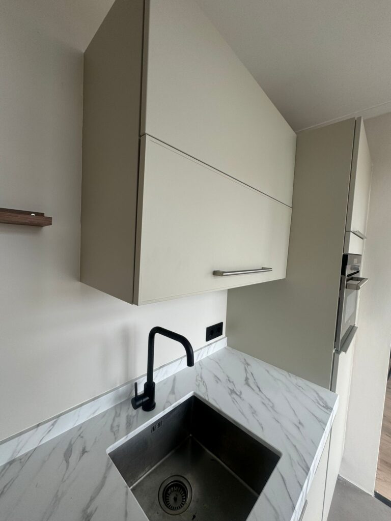 Deze transformatie door keukenwrapping is niet alleen snel en efficiënt, maar ook zeer kosteneffectief. In plaats van een volledige renovatie, die veel tijd en geld zou kosten, heeft de keuken een nieuw leven gekregen met minimale overlast. Hierdoor kan men volop genieten van een vernieuwde keuken zonder de rommel en ongemakken die gepaard gaan met een grote verbouwing. Kortom, de keuken in IJmuiden is van een saaie, witte ruimte getransformeerd tot een taupe en wit marmeren meesterwerk.