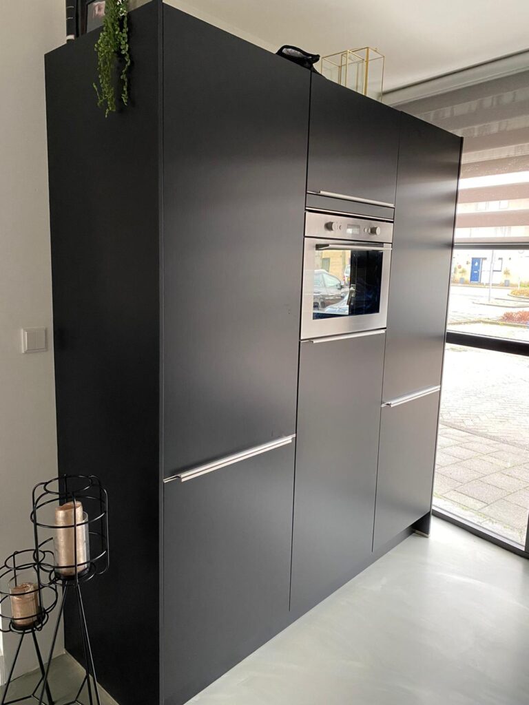 Het eindresultaat was verbluffend. De matzwarte afwerking gaf de ruimte een verfijnde en strakke uitstraling. Het stel was dolblij met hun “nieuwe” keuken, die nu niet alleen functioneel maar ook een echte eyecatcher was.